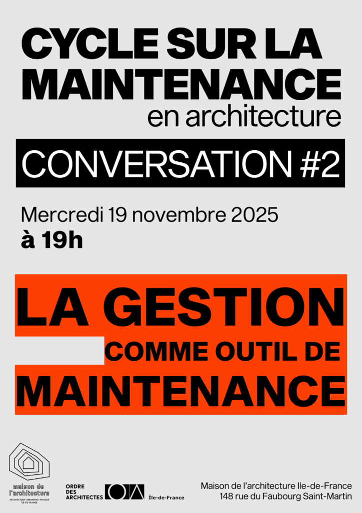 La Maison de l’architecture Ile-de-France et le Conseil régional de l’Ordre des architectes d’Ile-de-France lancent un cycle de conversations-conférences consacré à la question de la maintenance en architecture.